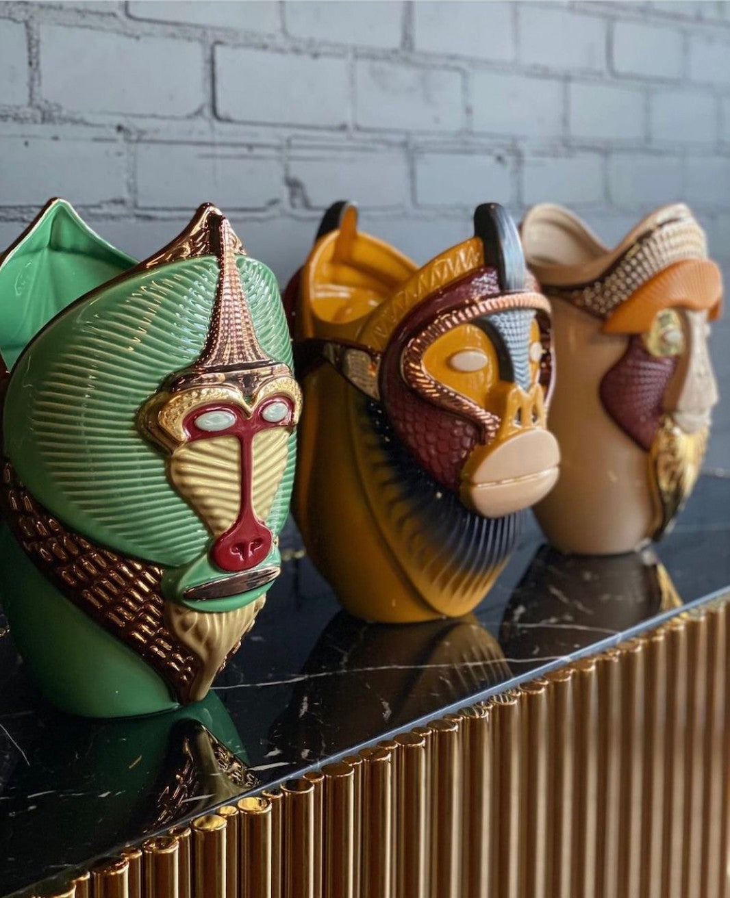 A collection in fine ceramic, designed to remind us of the delicate relationship between man and ape. The ape is the animal that best evokes man, in the shape of the body, expressions and movements.This power of similarity to man is what makes it fascinating and what inspired the creation of these vases, whose “soul” i