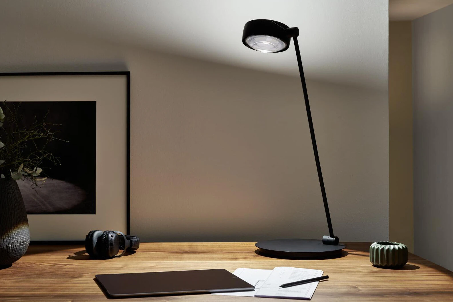 Experience premium quality lighting and sophisticated design with the Sento Tavolo 80 table lamp. This innovative luminaire features separate uplight and downlight control through advanced touchless gesture technology or optional Occhio air connectivity. The precision lens optics deliver directed, glare-free illumination perfect for reading and ambient lighting. The adjustable luminaire foot rotates 360 degrees, allowing you to customize the light direction to suit your needs. Designed for modern interiors, this LED table lamp combines functionality with elegant aesthetics.