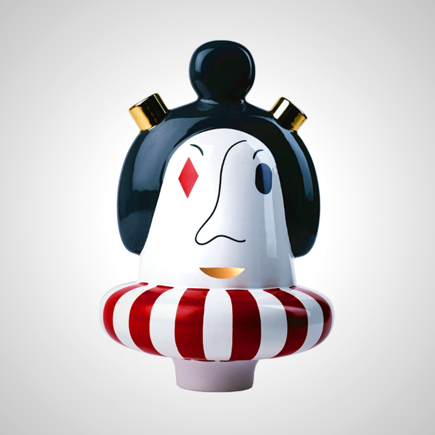 Takuya Double designed by Jaime Hayon for Bosa is a vase from the TheatreHayon collection. It is made of glazed ceramic. The collection also includes other vases, teapots and candle holders.